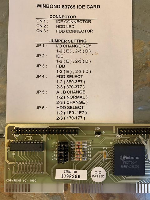 83765 IDE card - User's Manual | (16-bit hdd/floppy card) | (source: phonophan at the VCFF) |