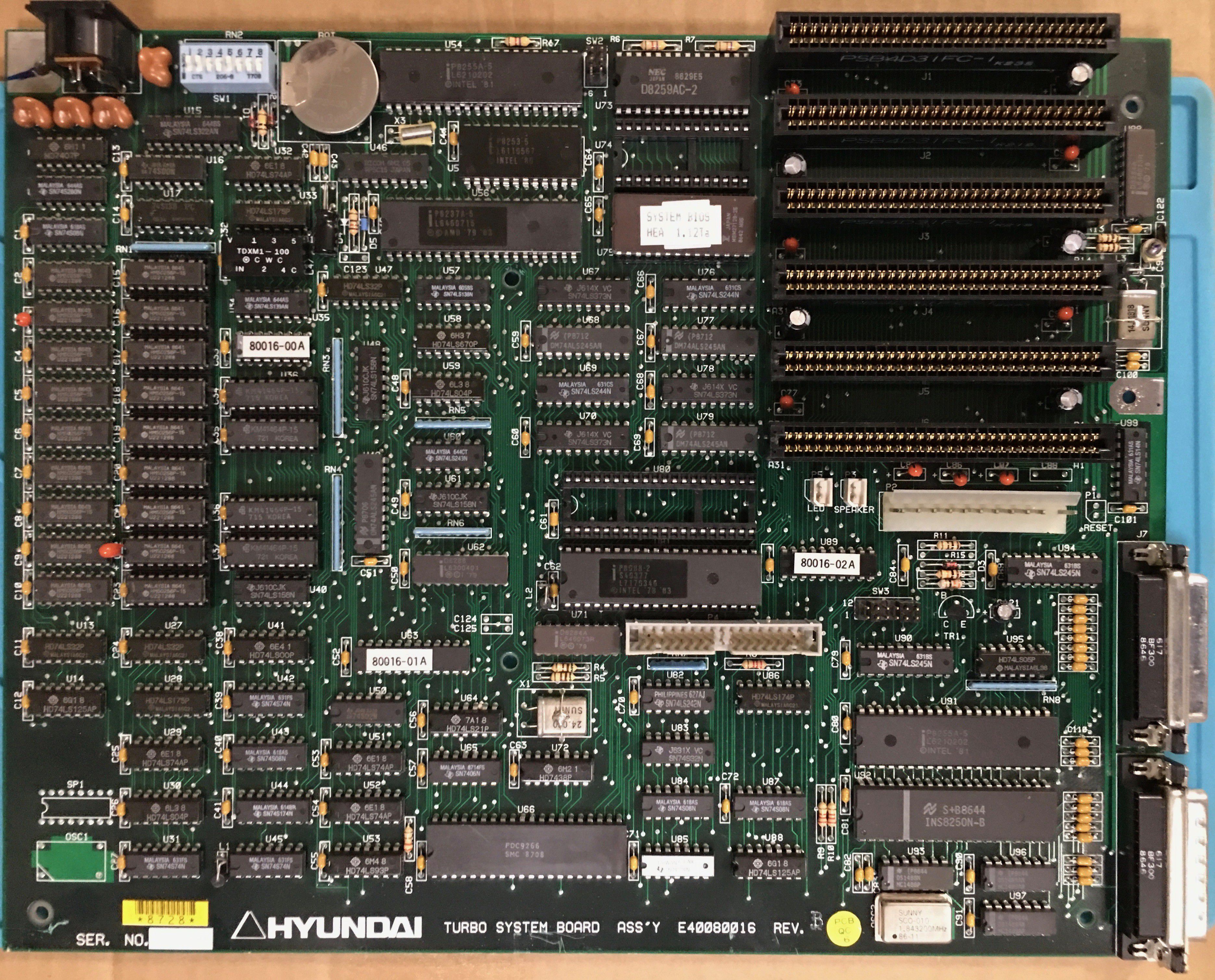 Comments | 1. Motherboard is labelled: HYUNDAI TURBO SYSTEM BOARD ASS'Y E40080016 REV.B 2. CPU speed (4.77MHz vs 8MHz) can be toggled using CTRL-ALT-ENTER. 3. The utility software is at here. |
