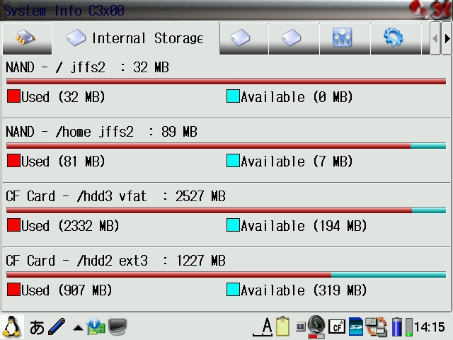 qtopia-sysinfo_1.23-2_arm.ipk is an even more enhanced sysinfo tool based on the Cacko one and displays more detailed disk info.