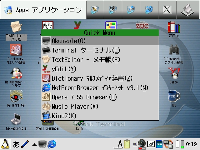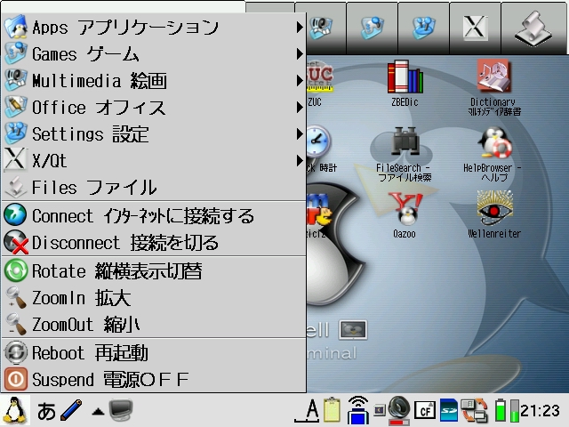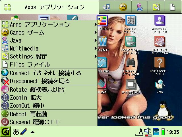 Some applications that you install after the localisation will still appear in Japanese, but most of those can be easily localised as well by looking under the /home/QtPalmtop/i18n/ja directory and if there is an additional qm file named after the application you installed there, simply move it into the .hide directory. However, some applications are written natively in Japanese and cannot be easily localised. I have created [langswitch_0.2_arm.ipk] which will allow you to move the qm files back and fro from the GUI (it requires opie-sh).