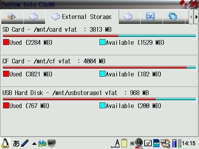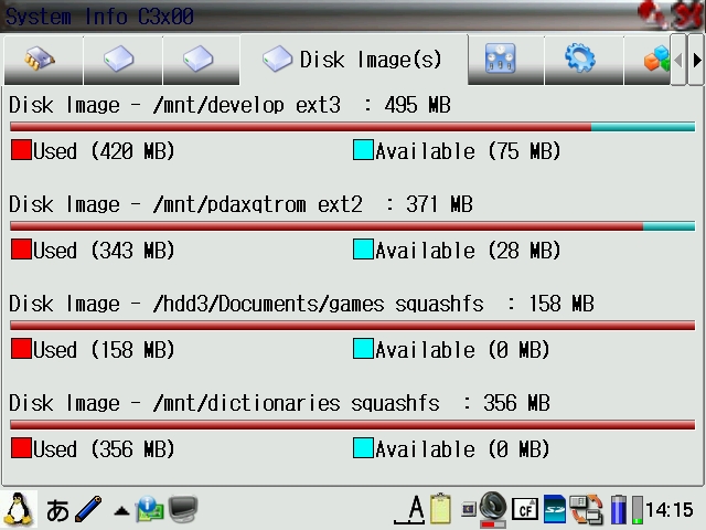 qtopia-sysinfo_1.23-2_arm.ipk is an even more enhanced sysinfo tool based on the Cacko one and displays more detailed disk info.