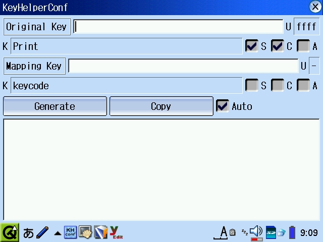 # cd /home/zaurus/Settings # cp /home/zaurus/Documents/custom/keyhelper.xml . # khctl reload |