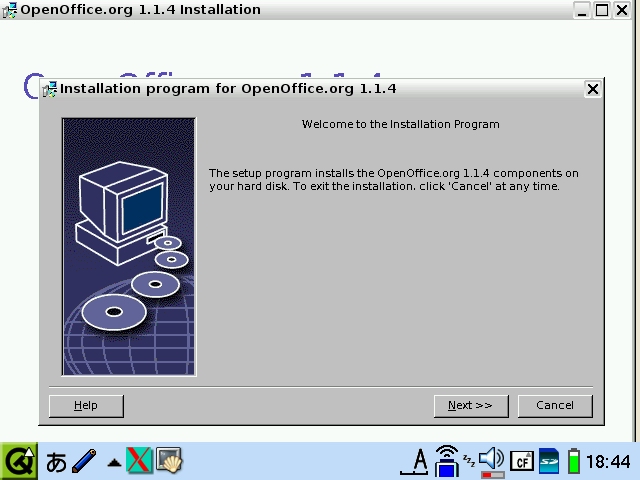 Connect the Zaurus via USB (make sure to plug the USB cable into the PC first, then the Zaurus). Copy the terminal ipk file [qpe-terminal-ja_1.5.0-3_arm.ipk] from the CD-ROM into the /Documents/Install_Files directory. Disconnect the USB device on the PC. The Zaurus will turn back to normal mode. Click on the third TAB on the top and then click on the little disk like icon. Then select the Install_Files folder. Inside, click on the ipk file (should be the only file there) and the installer will launch it. Press install (the big button at the bottom) and then OK (the button on the left) on the dialog box that comes up.