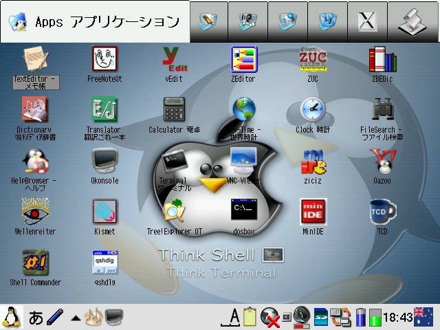 If you don't want to flash Cacko, but want the additional and updated functionality that Cacko provides, then you can install the Tetsu kernel and modules followed by additional Cacko lite modules (2.4.20). This should give you a kernel similar to Cacko. Then you can install the Cacko lite applications from the Cacko feed and the extracted packages mentioned above. This would get you very close to the functionality and features of Cacko 1.23. When customising Cacko with the customisation guide for Sharp distro, some packages and instructions can be skipped, eg. in the essential section Tetsu kernel, keyhelper, sudo and qkonsole are mentioned, but Cacko already contains them so it is not required to install them again. However, the keyhelper and automounter config in Cacko is very minimal and installing the custom config for those will enhance the capabilities for them. You can also add Japanese support back into Cacko by installing the [japanese-support-c3100jaen_1.23_arm.ipk] package and copying the dictionary back from the CD-ROM as well as installing the zdict and translater packages. The japanese-support-c3100jaen package which I have created does not restore all the Japanese menus. It gives you the Japanese inputmethod support without changing all the messages and the addressbook back into Japanese so the result is similar to what my custom-jaen package does on the Japanese Sharp distro. ![]() The above is a screenshot of Cacko after heavy customisation. It looks just like my customised Sharp distro. I also symlinked an Australian locale/inputmethod and also added an Australian icon for the keyboard applet. pdaXrompdaXrom is another alternate distro for the Zaurus. It is essentially a complete X windows environment. Thus pdaXrom would make your Zaurus into a mini laptop with an X server and a lot of the X applications available on your desktop/laptop Linux distro ported to the Zaurus. There is also a pdaXrom X86 version that is for your desktop/laptop so you can run the same applications on your Zaurus and your PC. The latest pdaXrom release is currently 1.1.0 r121 and the SL-C3100 is supported, however, it is not stable and full of bugs. There is also a beta version for the SL-C3000 based on the 1.1.0beta1 release (pdaXrom 1.1.0 beta1 for C3000 beta2) which is much more stable. There are still a few issues with the betas and hopefully, once they are all resolved, pdaXrom release version should be great. The most stable versions are still beta1 and beta3. Anything after that, ie beta4 or r121 are stil in the early stages of development and testing. I decided to test pdaXrom on my SL-C3000 because the C3000 beta2 release of pdaXrom 1.1.0 beta1 features a pivot boot feature that uses /home on the MicroDrive instead of the tiny 4MB /home on the flash. This neatly fixes the problem of the tiny /home running out of space since the flash on the C3000 is only 16MB and only 4MB of it is allocated to /home. However, this also prevents the MicroDrive to spin down for power saving and thus battery time is reduced, but it also responds faster due to no repeated spin up times (just replace the MicroDrive with a Flash Card and it will be perfect). Installation went flawlessly following the instructions on the OESF forum. The C3000 installer repartitions and reformats the entire MicroDrive into a single 4GB partition during install. Once installation is finished and you reboot, you will end up at the command line login prompt. Login as root without password and then use startx to get into the X GUI (well, it should boot right into the GUI since it is runlevel5). pdaXrom is a X windows environment that is by default pre-configured to use openbox as its window manager and uses matchbox applets for its panels and taskbar features. There is also a host of default applications pre-installed with the base pdaXrom install, most of which are quite useful. However, there are many more applications available for pdaXrom from its feeds. The X86 version which can be installed on a PC or Laptop has all the available applications pre-installed by default. The C3000 and C3100, as well as the C1000 and C3200 share a common feed. In addition, there is also a generic feed marked as C7x0 feed which is also required. To install more applications, use the Package Manager and configure the feed locations. The default feed URL pre-configured in the Package Manager is out of date and should be replaced with the generic (C7x0) and C3x00 specific feeds. You can also configure local feeds. Just download the feed.tar.gz files and extract the content to a card or the internal disk. Then point the package manager at the directory containing the feed contents (eg: file:///home/root/Documents/installs/C3000/feeds). The following applications were already pre-installed: